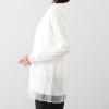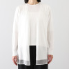 裾部分をシアー編みに切り替えた、上品で女性らしいデザイン。ヒップが隠れるやや長めの丈感が気になる部分をカバーし、さりげなくスタイルアップを叶えます。季節の変わり目や気温差のあるシーズンに重宝する薄手タイプで、気温調節としてはもちろん、おしゃれアイテムとしても活躍します。