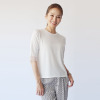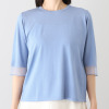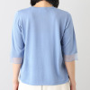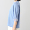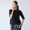 襟ぐりと裾を袋編みに仕立てた、高級感のあるつくり。袖口をシアー編みに切り替え、軽やかさと抜け感を表現しました。程良い長さの袖が二の腕をカバーしつつ、すっきりとした印象に。オフィスからカジュアルまで、幅広いシーンで活躍します。