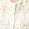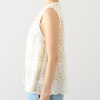 トルコの老舗刺しゅうメーカー“ブローシェ社”のレースを使用した華やかなジレブラウスです。綿ローンの爽やかな下地に、ラメ糸による繊細な刺しゅうがほどこされており、着用するだけで上品な存在感を放ちます。洗練された幾何学模様の刺しゅうは、縁起が良いとされる“七宝繋ぎ”をモティーフにデザインされ、ラメ糸の煌めきが特別感を演出。