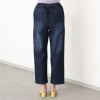 ウエストは総ゴム仕様でありながら、フロントはギャザーが寄らない設計で、すっきりとした腰回りを実現。前後のひざ上辺りに洗いをかけたヴィンテージ(ブラスト)加工をほどこし、カジュアル過ぎないこなれ感を演出。ゆったりとしたストレートシルエットは、大人の女性がきれいめにはきこなせるバランスにこだわって仕上げました。