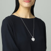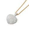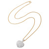 地金にステンレスを使用したロングペンダントです。大きめのハートモティーフに、極小のビジュウをぎっしりと敷き詰めました。存在感のある煌めきで、胸元を華やかに演出します。