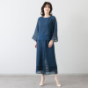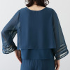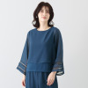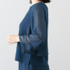 透けすぎない絶妙なシアー感と落ち感が魅力のシフォンジョーゼットをメインに使用しました。インナー部分には伸縮性のあるジャージー(ダブル編みポンチ)素材を採用。どちらも強撚なので肌離れが良く、さらっとした着心地で、身体のラインを拾いにくいのがうれしい。素材特性によりシワになりにくく、イージーケアな点も魅力です。