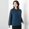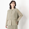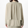 一枚で、計算されたスタイルが完成するレイヤード風デザイン。スタンドカラーで首元すっきり。脇カッティングで抜け感をプラスし、視線が縦に誘導することですっきり見えをサポート。軽やかなシフォン袖にはカフスを付け、袖下側のみにゴムを入れることで、見た目はきちん感がありながら、着心地は快適に。すべて本縫い仕立てで仕上げた一枚です。
