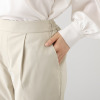 ウエスト後部はゴム仕様で快適にフィットし、すっきり見えるシルエットに。フロント左右に1本ずつ入れた深めのアウトタックで縦のラインを強調し、脚長見えも期待できます。