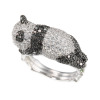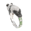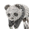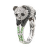 プラチナ900をベースに、ブラックダイヤモンドとホワイトサファイアのコントラストでパンダを表現したリングです。竹に見立てたグリーンガーネットの鮮やかな色味が際立ち、身体を伸ばしてぎゅっと竹を抱え込むようなポーズで小首を傾げるパンダの姿は、見る人の心を和ませてしまうほどの微笑ましさ。熟練した職人の技術によって表現された、繊細な造形が光ります。