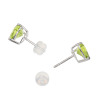プラチナ900を使用した、若草色のペリドットが主役のピアスです。明るく鮮やかで透明感のあるペリドットを、その複屈折性を生かして奥行きのあるハートシェイプに仕立てました。このサイズ感と色味だからこそ、甘すぎない大人かわいい表情をお楽しみいただけます。