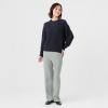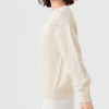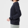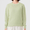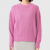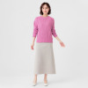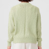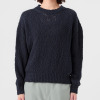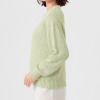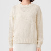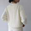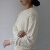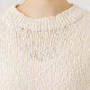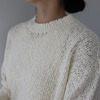 オーガニックコットンを使用した、特殊なスラブリリヤーン素材のプルオーバーです。通常の綿スラブ糸とは逆の形状で、スラブ箇所が多く、スラブではない箇所が少ないのが特徴。絶妙な透け感とナチュラル感を併せ持ったファンシーヤーンで、ベーシックなアイテムながら、凹凸のある表面感がポイントになっています。編地切り替えで入れた、後ろ中心のラインもアクセント。スラブ箇所に撚りが入っていないこと、スラブ箇所が多いことが相まって、軽量感とソフトな風合いを生み出しています。3ゲージの天竺ホールガーメントで編み立てました。