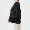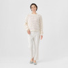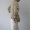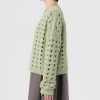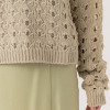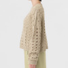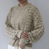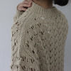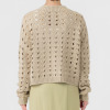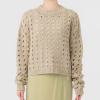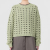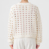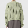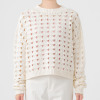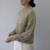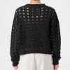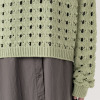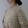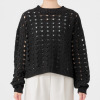 透かし柄のホールガーメントで編み立てた、クルーネックのショート丈プルオーバーです。ストレッチ性とバルキー性を兼ね備えた、ポリエステルコットンのリリヤーン素材を使用。スポンジッシュで膨らみがあり、針抜きで編んだ柄が目を惹くアクセントになっています。凹凸のある大きめの透かし柄がポイントになる1枚。タンクトップやカットソー、ワンピースに合わせていただくのもおすすめです。ホールガーメントなので脇にハギがなく、透かし柄もすっきりとした印象。