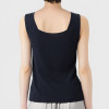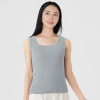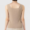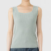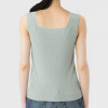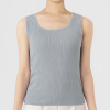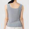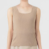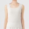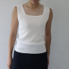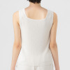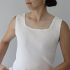 スクエアネックのタンクトップです。柔らかなタッチの素材を使用し、2×2リブの16ゲージ天竺で編み立てました。前後の襟下がりが異なるため、合わせるアイテムによって前後2ウェイで着用いただけます。程良いフィット感で、身体のラインをきれいに魅せてくれそう。同素材のカーディガンと合わせて、アンサンブルで楽しむのもおすすめです。