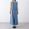イタリアマダムのトレンドを意識した洗練されたオールインワンです。やや長めの着丈とたっぷりとったワイドシルエットにより、まるでドレスのような特別感を演出。フリンジやメタルボタンを随所に配してデザインポイントをつくり、一枚での着用はもちろん、ジャケットやカーディガン、透け感のある羽織りやインナーと合わせられるように仕上げました。