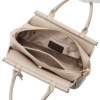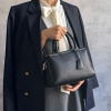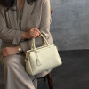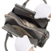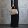 小さな見た目ながら3室構造で荷物の仕分けがしやすく、使い勝手が良好。底びょう付きでしっかり自立するのもポイントです。取り外し可能なショルダーストラップが付いているので、手持ちはもちろん斜め掛けスタイルでも楽しめます。付属のキーチャームがさりげないアクセントに。