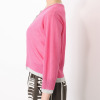 襟周りや前立てなどに配色のリブ編みを採用。コーディネイトしやすく、どんなボトムスとも相性抜群です。
