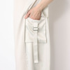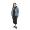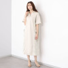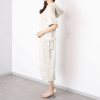 すとんと落ちるシルエットをベースに、ドロップショルダーで程良く力の抜けた印象を演出。袖口は折り返しのダブル始末で、カジュアルになり過ぎない上品さを保っています。脇部分はサテン素材を切り替えて、異素材のコントラストが縦のラインを強調。両脇に配したカーゴポケットには飾りベルトを加え、存在感を高めました。後ろ裾中心に配したベント始末により、ロング丈でも脚運びがスムーズです。トップスとボトムスを考えずに、一着でスタイリングが完成する利便性も魅力的。