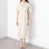 ヘブンアンドアース サテン切替 ハーフジップ フーディーワンピース