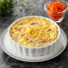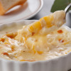 5月は“コーングラタン”をお届けします。トッピングに北海道産のとうもろこしをしっかり乗せ、ホワイトソースの中にもとうもろこしのピューレを入れた濃厚なグラタンです。チーズはゴーダチーズとモッツァレラチーズとパルメザンチーズを黄金比で配合したのびが良く、コクのある味わいのものを使いました。塩、砂糖、ホワイトペッパー、乾燥パセリなどの調味料にすることでとうもろこし本来の甘みを堪能できるように仕上げています。