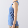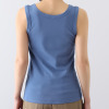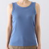 重ね着にちょうど良いリブ素材のタンクトップです。襟ぐりと袖ぐりはバインダー始末で、伸びのある仕様。綿にストレッチ糸を加えた伸縮性のある素材で、程良い厚みがあり薄すぎないので、インナーとしておすすめです。
