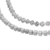 数百個のリサイクルウッドビーズを連ねて仕立てた、ネックレス2本セットです。シャープなスクエアデザインと遊び心あふれるUFOデザインの2タイプで、気分や装いに合わせて使い分けられます。
