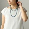 ウッドビーズが織りなす、アートのような存在感。温もりのある素材感と軽やかな着け心地が魅力です。