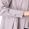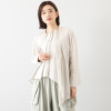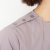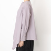 左右非対称に配置したタックが目を惹くデザイン。長さや分量をランダムに設定することで、独創的なシルエットを実現しました。右肩線にボタンを配しており、着脱のしやすさとデザイン性を両立。袖は長めのカフスを付けたシャツ袖仕立てで、そのままはもちろん、少しめくってラフな印象で着こなしても素敵です。