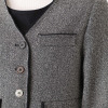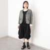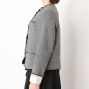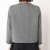 ツイード風の生地に全面芯を張り、程良いハリ感とコシを持たせたノーカラージャケットです。春らしい軽やかさを持ちながら、一枚着るだけでしっかりとした存在感を放ちます。