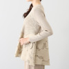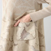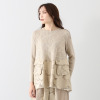 Aラインのゆったりとしたシルエットが、体形をさりげなくカバー。布帛部分は透け感がありますが、ストレッチ性のある裏地付きのため安心して着用いただけます。大きなポケットを配し、デザイン性と実用性をプラスしました。異なる素材を美しく縫い合わせるには熟練の技術が必要ながら、経験豊富な職人たちの手によって妥協なく仕上げています。