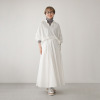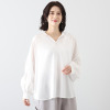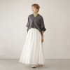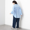 とろみのある素材を使用したブラウスです。シワが気になりにくい素材感で使いやすく、着るだけで女性らしさアップ。襟ぐりはアレンジできるデザインで、シーンや気分に合わせて印象を変えられるのが魅力です。背中部分はシャーリングを採用し、背中の丸みを自然にカバー。パンツスタイルには裾を前だけイン、スカートスタイルにはすべてインをするとすっきり上品にまとまります。骨格が華奢な方も、しっかり体形の方もきれいに着こなせる一枚です。