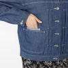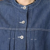 岡山児島産の高品質なライトオンスデニムを使用したノーカラージャケットです。ノーカラーながら、開きすぎないスタンドカラー風のデザインにしてカジュアルな雰囲気に。リラックスして着こなせる、オーバーサイズで、ヴィンテージGジャンの特徴的なディテールである前身頃のプリーツを取り入れました。実用性を考慮し、ポケットは使いやすい腰位置に配置し、フラップを省いたシンプルなものにデザイン。袖カフスと後ろ裾には調節可能なボタンを備えており、さまざまなスタイリングを楽しめます。広島県福山市にあるデニム専門工場の熟練の技を持つ職人による丁寧な縫製と、ワンウォッシュ仕上げによる縮みにくい加工で、長く愛用できる一着に。