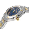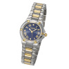 コンビカラーのメタルバンドが印象的な、ダイヤモンドウォッチです。高級感が漂う仕上がりながら、小ぶりなケースでデイリーに使いやすいデザイン。ローマ数字のインデックスがクラシカルな雰囲気を演出しつつ、3石のダイヤモンドが高級感を演出します。艶感のあるネイビーの文字盤と、ゴールドカラーのコントラストが気品を漂わせ、お手元を華やかに彩ります。
