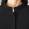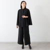 スタンドカラー部分にシャーリングを入れることで女性らしい印象を演出。冠婚葬祭のセレモニーにも適したエレガントなシルエット。気になる二の腕やウエスト、ヒップラインを包み込み、着やせ効果も期待できます。ワンピースだけではなくパンツスタイルにもコーディネイトしやすい着丈にこだわりました。シンプルなワンピースに羽織るだけでエレガントさがアップします。