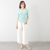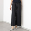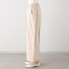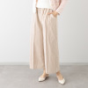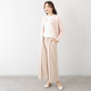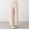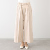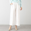ワイドなシルエットで身体のラインを拾いにくく、エレガントでありながらマニッシュな印象も与えます。ポケット口には、フリル付きツイードジャガードをあしらい、シンプルなデザインに華やかさをプラス。内側にはゴムベルトを挟んだ総ゴム仕様で、快適なはき心地。