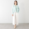 ワイドシルエットで体形をカバーしつつ、ポケット口のツイードジャガードがさりげなく華やぎを添えます。