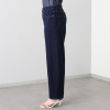 ウエストベルト部分は、ゴム入りのように伸びながらベルトなしのでも安定感のある切り替え仕様。背中側は深く、お腹周りはカーブの形状を緩くし、食い込みにくいよう考慮しました。フロントのスレキはファスナーに挟み込むようにすることで、下腹部を自然に抑えるガードル効果が生まれ、ぽっこりお腹が目立ちにくいように工夫しています。