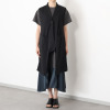 微光沢感のある生地を使用し、細かなシワ感を表現したベストです。黒の重たさを抑えた上品な表情が印象的。滑りの良い軽やかな素材感で、着脱がスムーズなのもポイントです。