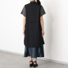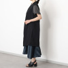 微光沢が魅せる上品な黒の表情。タックと切り替えラインで縦のメリハリを生み出し、すっきりと見せます。