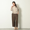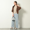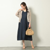 麻の中でも繊維質が長く、麻特有のチクチク感が少ないフレンチリネンをメインに用いた素材を使用。リネンならではのドライでサラッとした肌触りが魅力で、素材特性として吸放湿性があり、汗ばむ季節も心地良く過ごせそうです。二度の柔軟加工とエアーフィニッシュにより、柔らかく肌になじむ風合いを感じられます。ナイロンと混紡することで強度を持たせて、手洗いができる製品に繋げました。程良い光沢と透け感のあるシアー素材は、上品な肌見せを叶え、健康的で若々しい印象を演出。