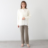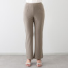 ウエストは締め付け感の少ない総ゴム仕様。楽なのにゴムジワ・ダボつきのないスッキリとしたウエストを実現しました。股上はお腹とヒップをやさしく包み込む、安心感のあるおへその上に設定。ウエストからヒップは身体の丸みに合わせてゆったりフィットするよう設計し、ヒップ周りから裾にかけてはコンパクトなシルエットに仕上げました。