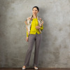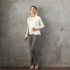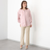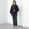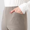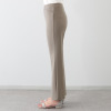 360度ストレッチ性のある、“ユニチカ(株)”の“アルディナ(R)”を使用。独特なパウダータッチと優れた着用感、風合い感、ソフトでしなやかな美しいドレープ性が特徴。素材のドレープ感を最大限に生かし、広がりすぎないセミフレアーパンツに仕立てました。UVカット性(紫外線遮蔽率93%以上、UPF50+)があるのもうれしいポイントです。