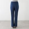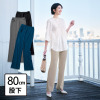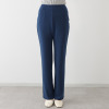 ウエストは締め付け感の少ない総ゴム仕様。楽なのにゴムジワ・ダボつきのないスッキリとしたウエストを実現しました。股上はお腹とヒップをやさしく包み込む、安心感のあるおへその上に設定。ウエストからヒップは身体の丸みに合わせてゆったりフィットするよう設計し、ヒップ周りから裾にかけてはコンパクトなシルエットに仕上げました。