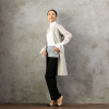 360度ストレッチ性のある、“ユニチカ(株)”の“アルディナ(R)”を使用。独特なパウダータッチと優れた着用感、風合い感、ソフトでしなやかな美しいドレープ性が特徴。素材のドレープ感を最大限に生かし、広がりすぎないセミフレアーパンツに仕立てました。UVカット性(紫外線遮蔽率93%以上、UPF50+)があるのもうれしいポイントです。