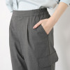 ラクさと美しさ、使いやすさをバランス良く備えた大人のためのカーゴパンツです。ウエストは両脇から後部にかけてゴム仕様にした窮屈に感じにくいつくり。フロント部分にギャザーが寄らない設計にすることで、お腹周りがすっきりと見えるように工夫しました。タックの効果で立体的にきれい見えし、トップスをインしてもエプロンを重ねても美しいシルエットをキープします。太すぎず細すぎない絶妙なストレートラインは、脚のラインを拾いにくく、ヒップや太もも周りを自然に包み込むことで体形カバー効果も発揮。