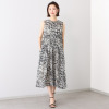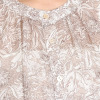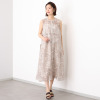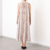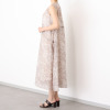 やさしい透け感とハリが同居する素材感が特徴。同系色のプリントを重ねることで奥行きのある表情を生み、シックでありながらも華やかな印象を演出します。