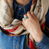 艶やかなジェムストーンが映える、印象的なリング。高さのあるセッティングが石の美しさを引き立てます。