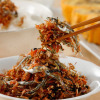 1952年の創業より、長崎県雲仙市で一貫して海産物加工を行ってきた<ヤマジョウ>より、全国から厳選した5種類の乾物に加え、香り高いごま、そして地元長崎の醤油メーカーと独自に作り上げた専用たれをセットにした「まぜる佃煮」のご紹介です。6種の具材とたれをさっと混ぜるだけで、噛みしめるたびに素材の旨みが広がる佃煮になります。いりこをはじめとする良質な海産物が集まるメーカーで、30年以上前から、まかないとして食べられてきた“即席佃煮”を商品化しました。素材をそのまま楽しんでいただけます。