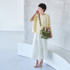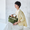 忙しい女性に向けて、旅行や日常使いに最適なアイテムを提案するブランド<viaggi(ヴィアッジ)>とのコラボレーションアイテムです。お手入れのしやすいネオプレン(特殊合成ゴム素材)を使用した、軽量でありながら高級感のあるデザイン。表面の両面をナイロンやポリエステルで挟み込んだ構造で、肌触りが良く、シワになりにくい仕上がりです。クロコダイル革のベルトやハンドル、ショルダーストラップを組み合わせることで、スポーティさを抑えた、品の良いエレガントな表情に。紫地にゴールドカラーの糸が映える布ブランドタグが、エレガントさをより一層引き立てます。