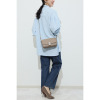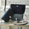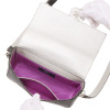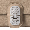 スペイン“カルティドスバディア社”の“モーツァルト(子牛革)”を使用。スワロフスキー(R)・クリスタルを約140個以上マイクロセッティングし、ロジウムメッキをほどこしたアールデコモティーフがアクセントになったデザインです。マチが広いデザインは収納力があり、日常使いの実用性も兼ね備えています。ストラップは、スリムウォレットと同素材を用いています。
