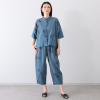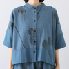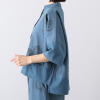 ラウンドネックと肘をカバーする長めの袖丈、ストレートなシルエットが特徴です。生地の特性により身体のラインを拾いにくく、きれいに着こなせます。天日干しで仕上げられた風合い豊かな素材感と和のテイストが融合した、品の良い大人のブラウスです。