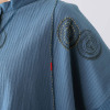 手染めの渦巻き模様と丁寧な刺し子が魅せる上質な和テイスト。ストライプ生地ですっきりとした印象を演出。