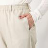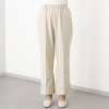 セミワイドストレートシルエットが美しい、洗練された印象のパンツです。センターに配置されたシームラインが縦のラインを強調し、脚をすっきりと長く演出。ウエストはゴム仕様でリラックス感のある履き心地です。