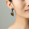 本べっ甲茨布を使用したスウィングイヤリングです。茨布をしっかりとした大きさのリーフ型にカットし、動きのあるデザインに仕立てました。軽やかに揺れるたび、お顔周りをぱっと明るく見せてくれそう。両耳合わせて1円玉5枚分よりも軽いのがポイント(1円玉: