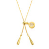 フラワーモティーフにCZをあしらった、スーパーロングネックレスです。前にフラワーモティーフ、後ろにチャーム付きスライドボールを配し、両サイドのドロップチャームを前に垂らして楽しめるデザインです。
